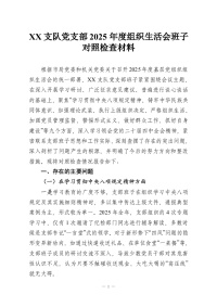 XX支队党支部2025年度组织生活会班子对照检查材料
