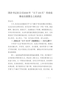 国企书记在公司2026年“大干100天”劳动竞赛动员部署会上的讲话