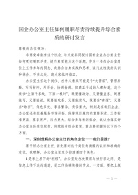 国企办公室主任如何履职尽责持续提升综合素质的研讨发言