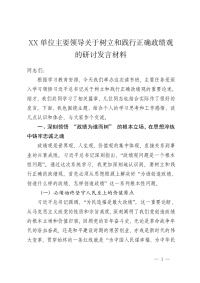 XX单位主要领导关于树立和践行正确政绩观的研讨发言材料