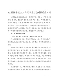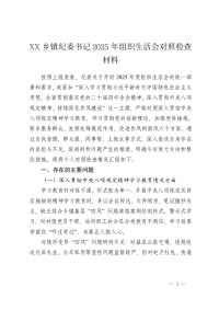 XX 乡镇纪委书记2025 年组织生活会对照检查材料
