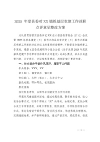 2025 年度县委对XX镇抓基层党建工作述职点评意见整改方案