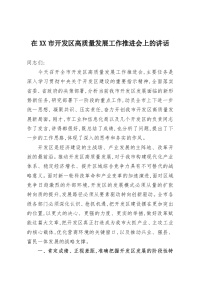 在XX市开发区高质量发展工作推进会上的讲话