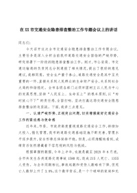 在XX市交通安全隐患排查整治工作专题会议上的讲话