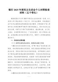 银行2025年度民主生活会个人对照检查材料(五个带头)
