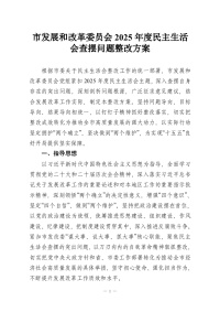 市发展和改革委员会2025年度民主生活会查摆问题整改方案