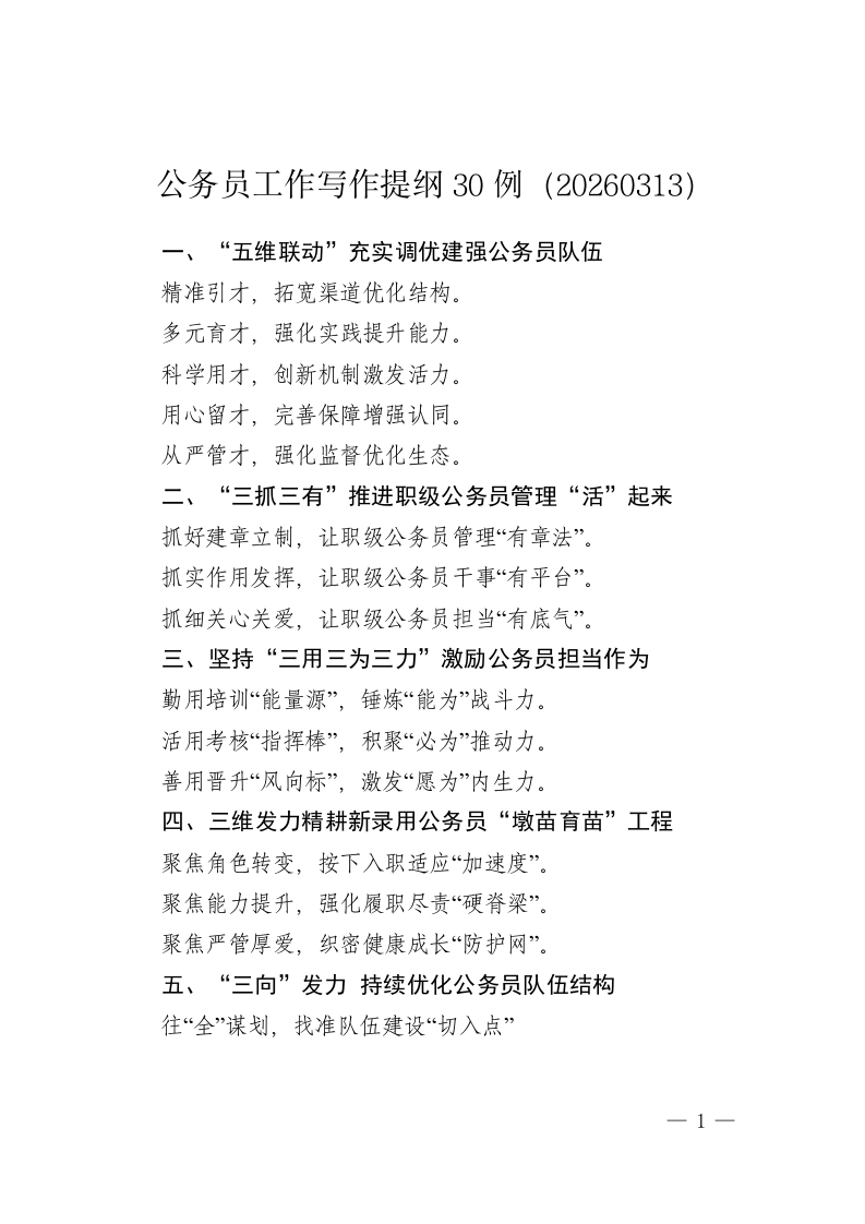 首页写作提升写作提纲公务员工作写作提纲30例(20260313)