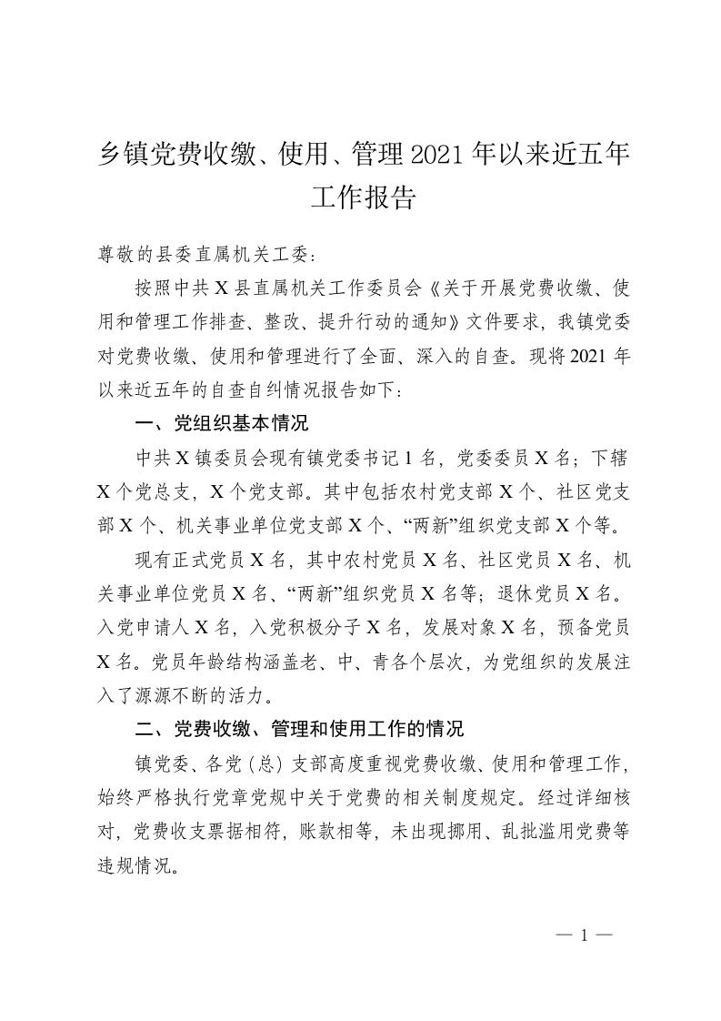 乡镇党费收缴、使用、管理2021年以来近五年工作报告