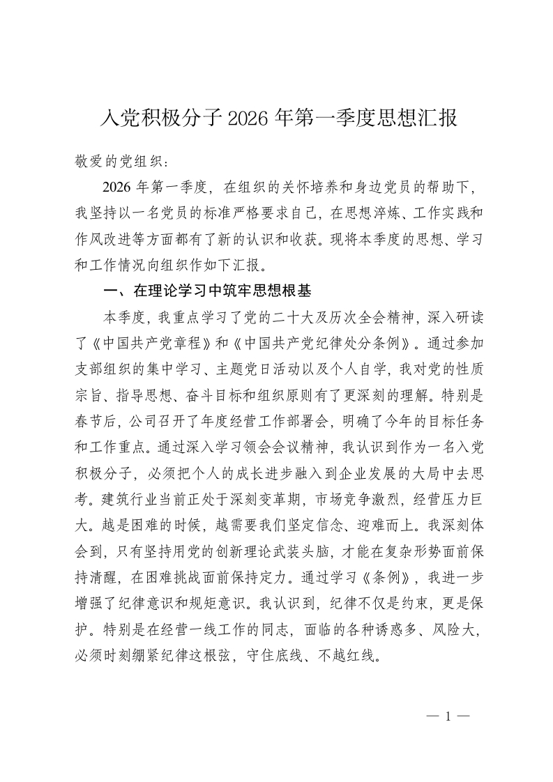 首页公文大全工作汇报入党积极分子2026年第一季度思想汇报