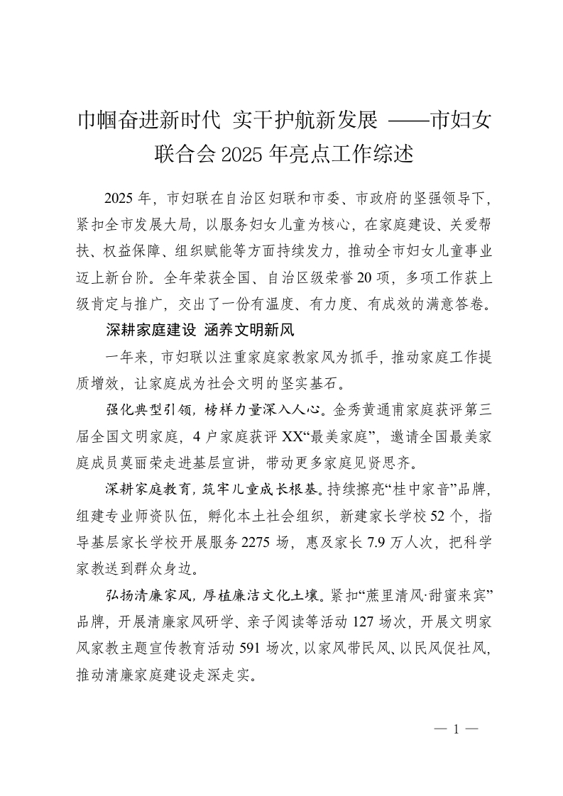 首页公文大全总结报告巾帼奋进新时代 实干护航新发展 ——市妇女联合会2025年亮点工作综述