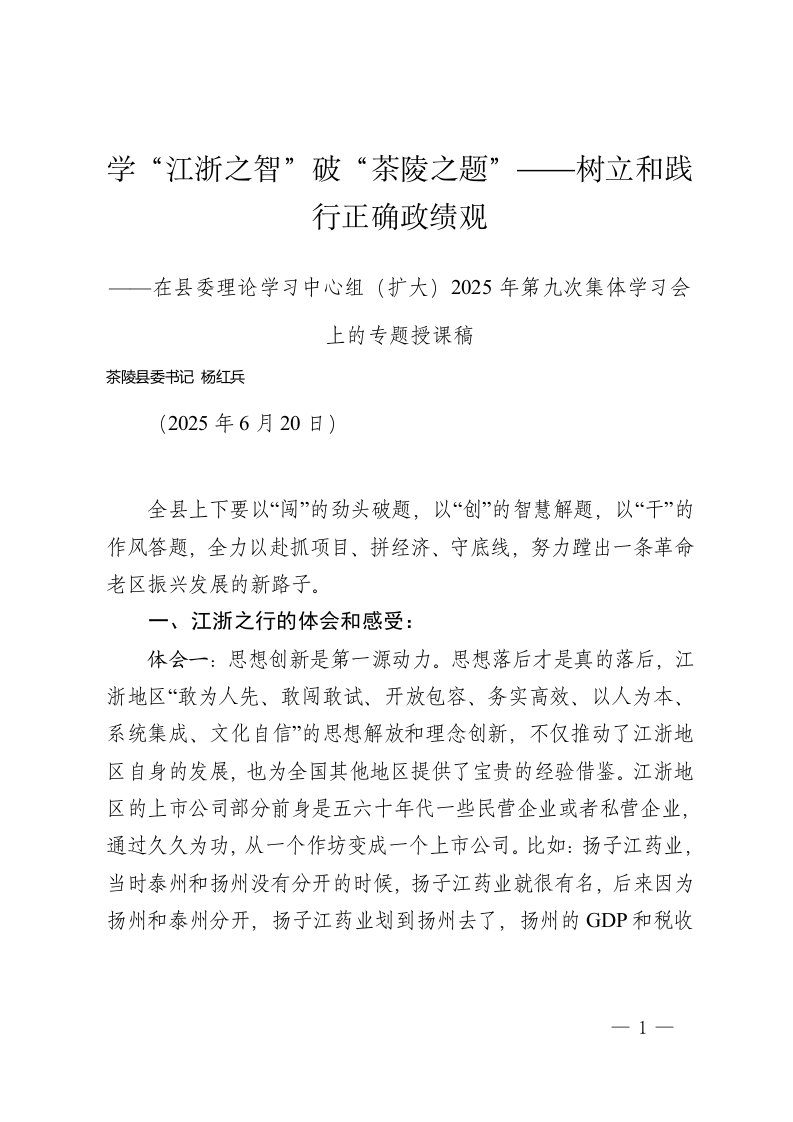 学“江浙之智”破“茶陵之题”——树立和践行正确政绩观