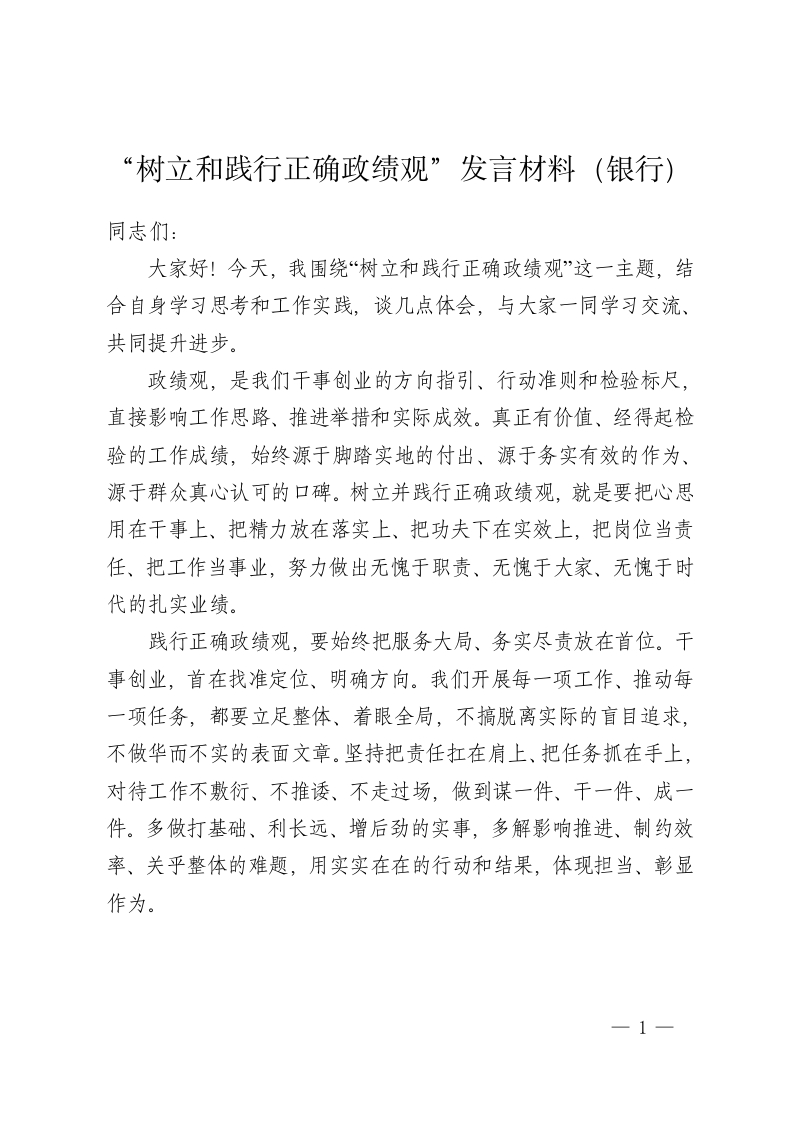首页百家争鸣银行“树立和践行正确政绩观”发言材料(银行)