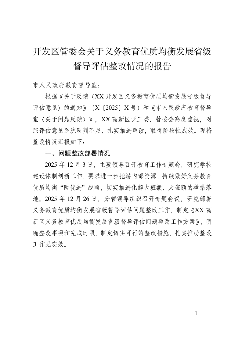首页公文大全总结报告开发区管委会关于义务教育优质均衡发展省级督导评估整改情况的报告