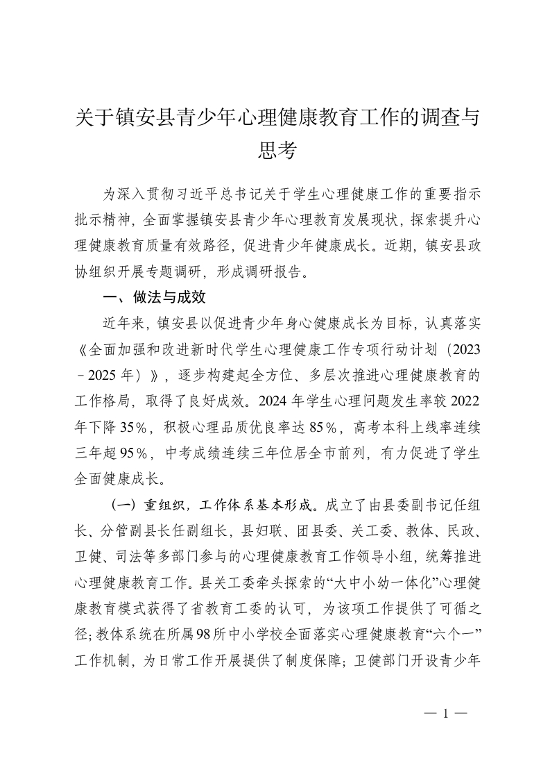 首页公文大全工作汇报关于镇安县青少年心理健康教育工作的调查与思考