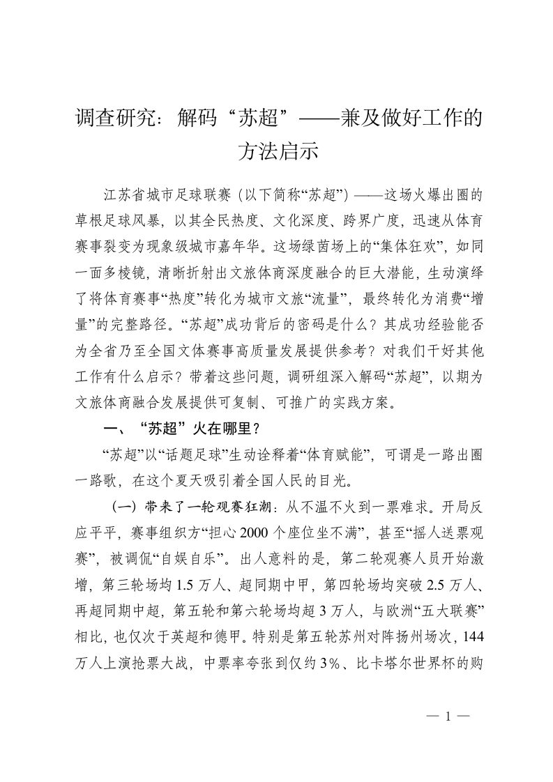 首页公文大全工作汇报调查研究:解码“苏超”——兼及做好工作的方法启示