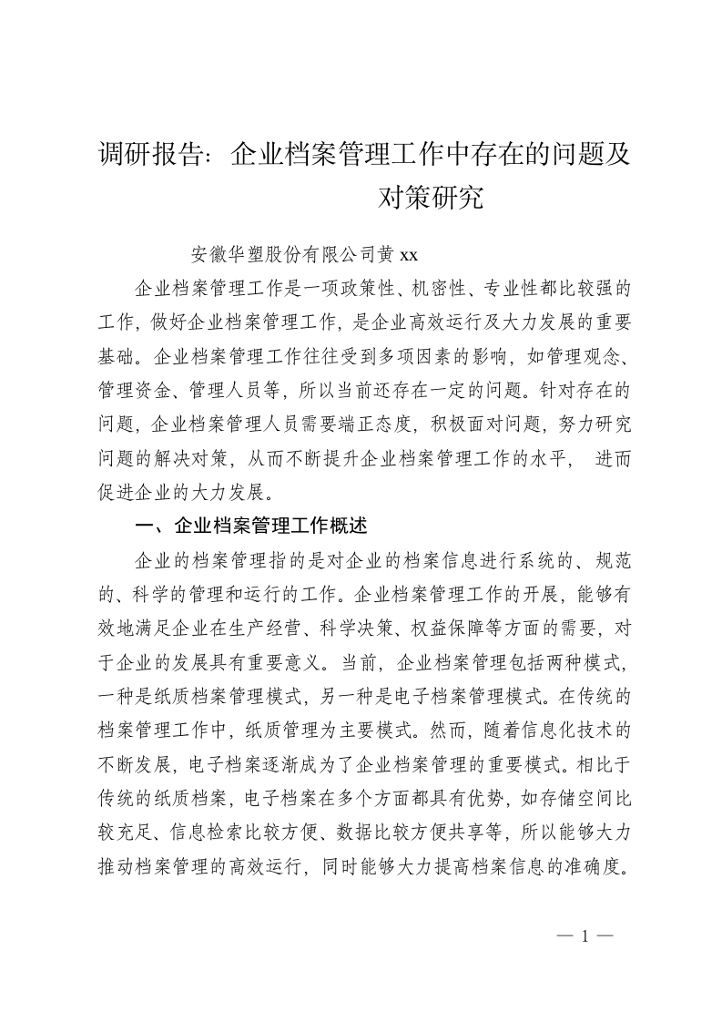 调研报告:企业档案管理工作中存在的问题及对策研究