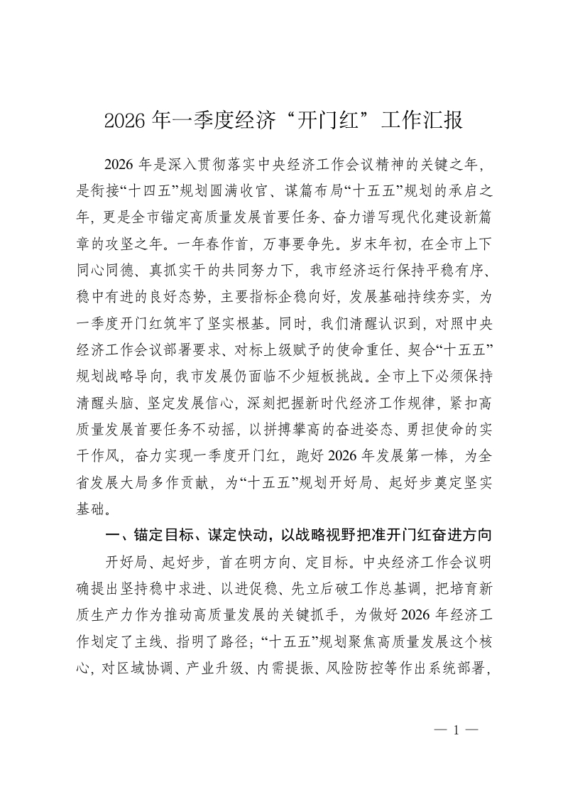 2026年一季度经济“开门红”工作汇报