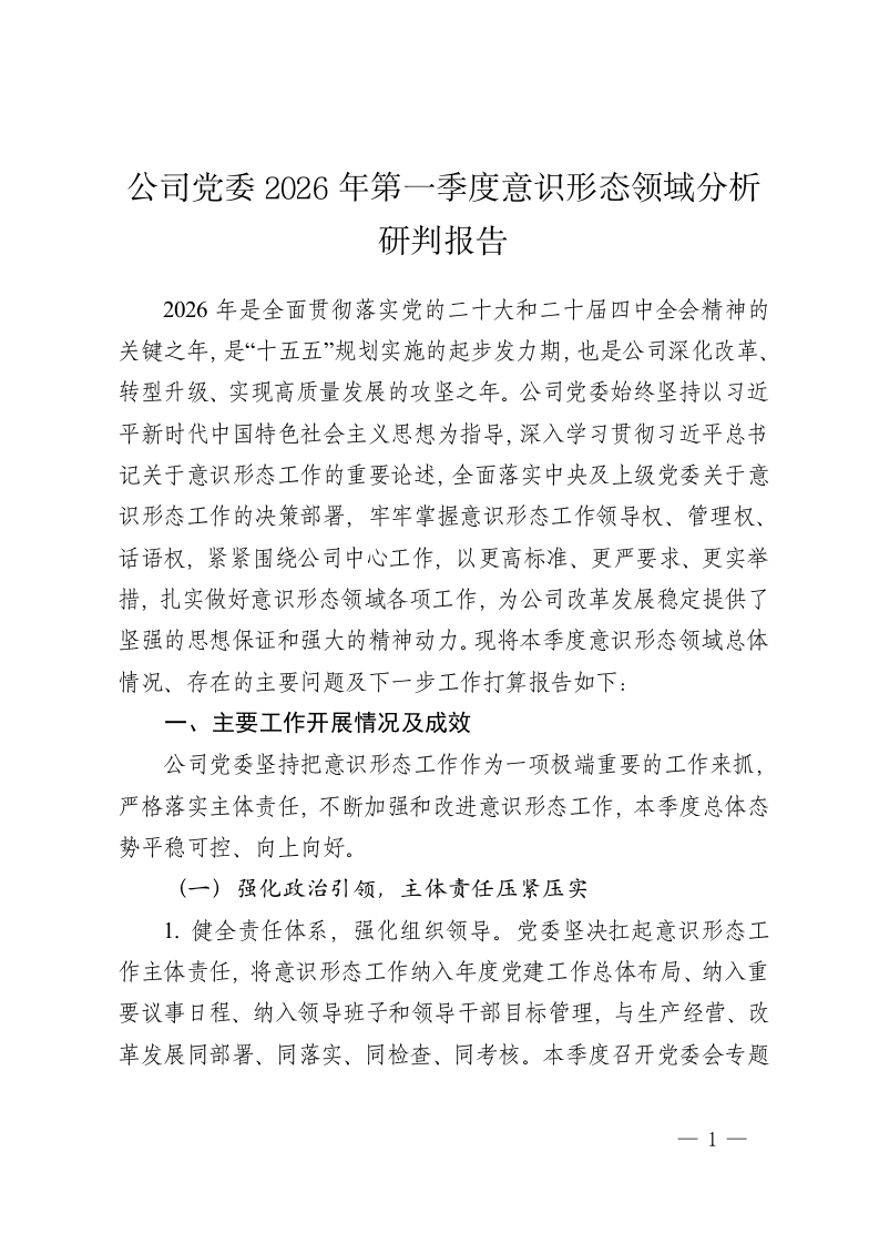 首页公文大全总结报告公司党委2026年第一季度意识形态领域分析研判报告