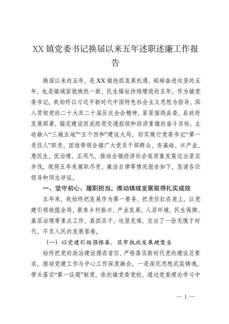 XX镇党委书记换届以来五年述职述廉工作报告2