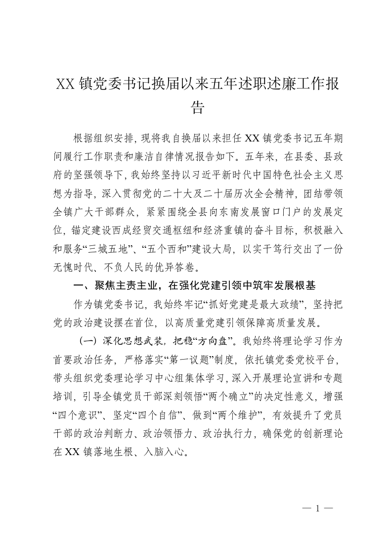 首页公文大全述职述廉XX镇党委书记换届以来五年述职述廉工作报告