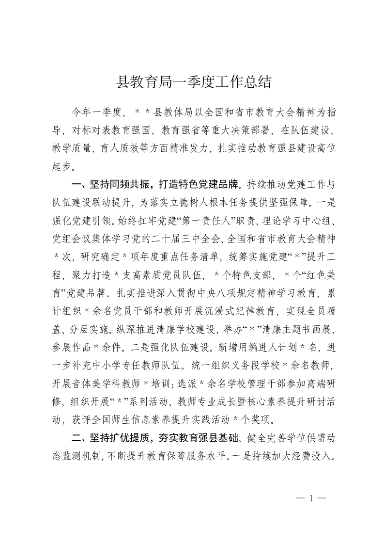 县教育局一季度工作总结