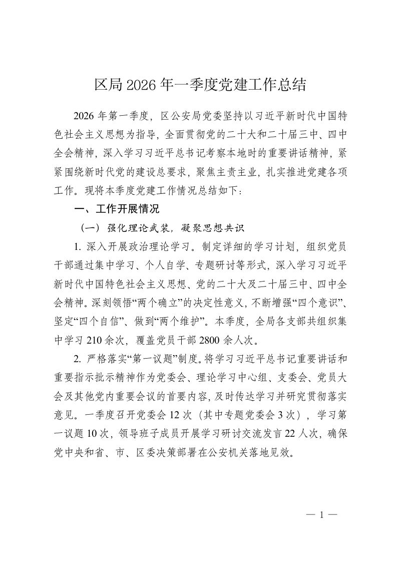 区局2026年一季度党建工作总结