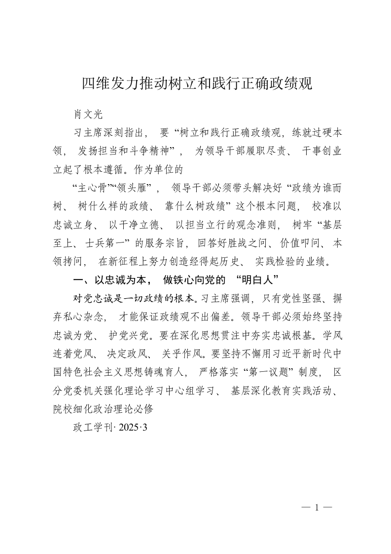 四维发力推动树立和践行正确政绩观