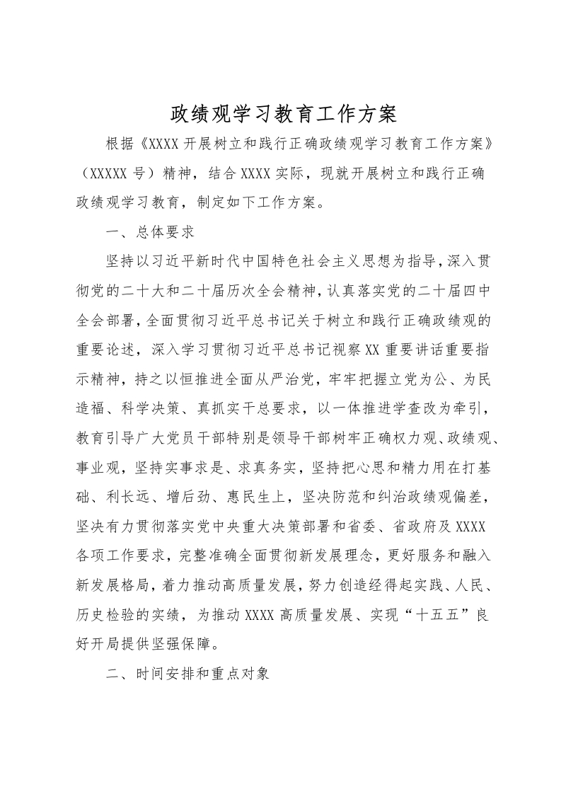 政绩观学习教育工作方案