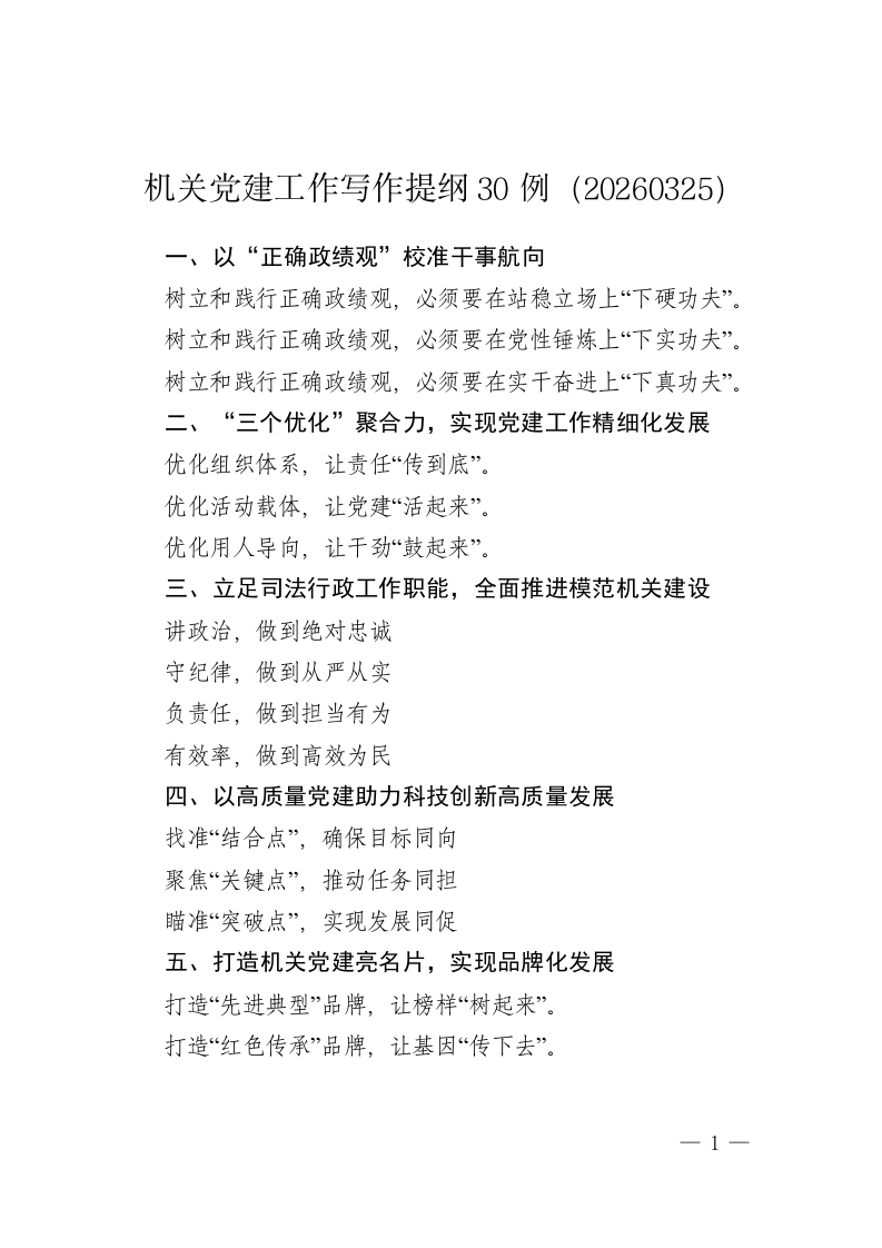 机关党建工作写作提纲30例(20260325)