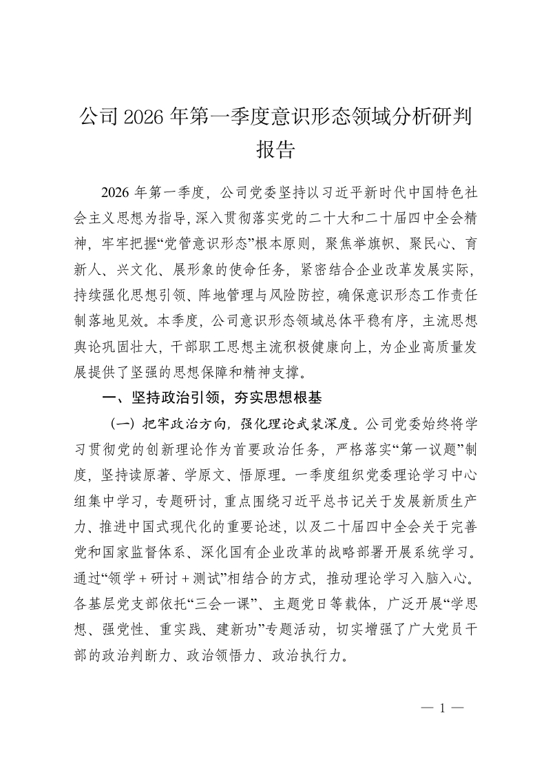 首页公文大全工作汇报公司2026年第一季度意识形态领域分析研判报告