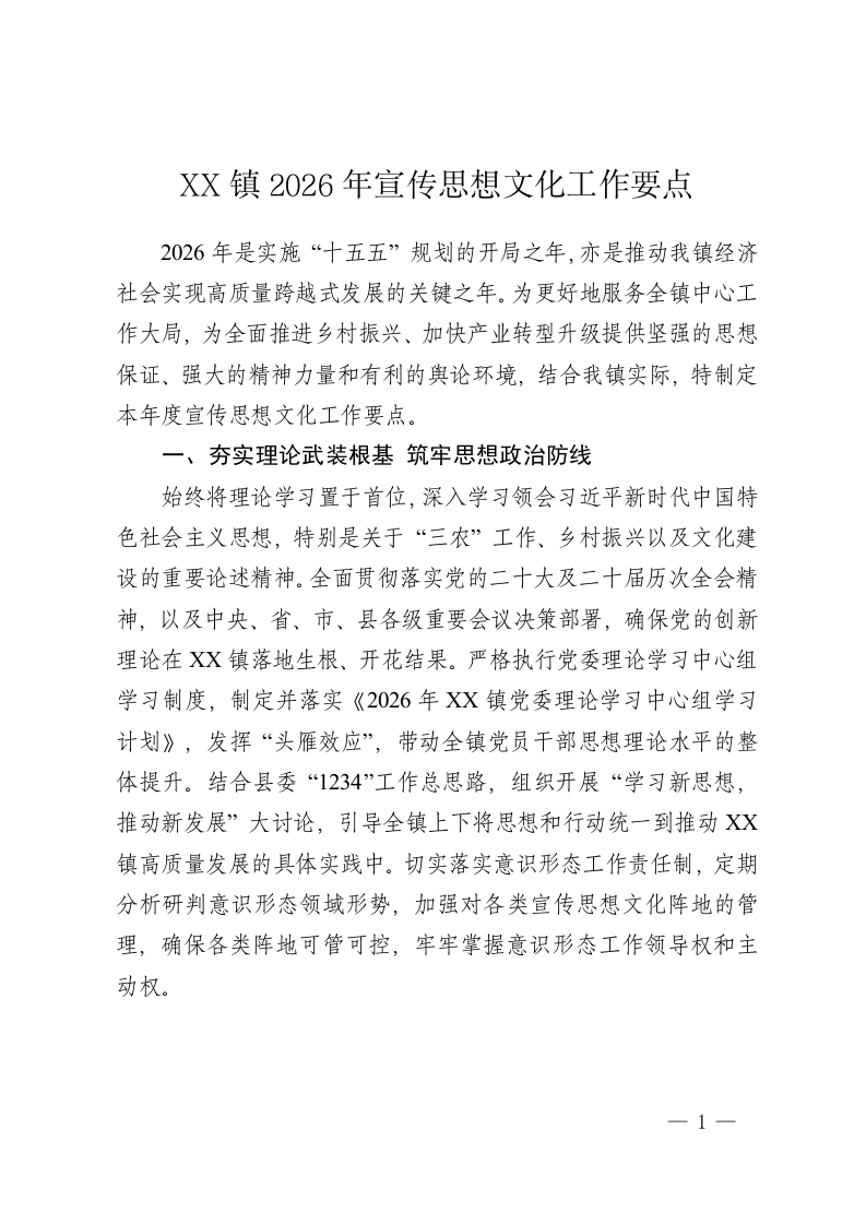 首页公文大全工作要点XX 镇2026 年宣传思想文化工作要点