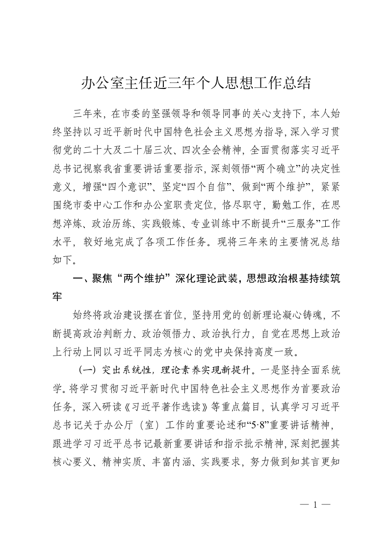 办公室主任近三年个人思想工作总结