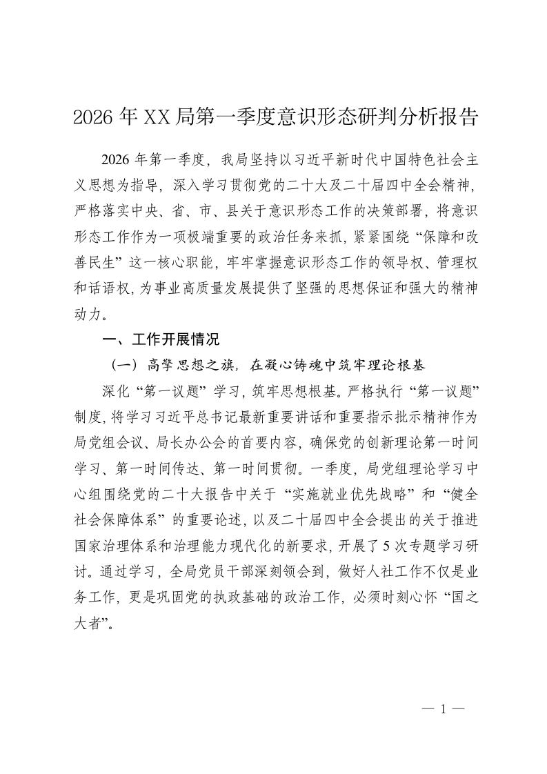 首页公文大全总结报告2026 年XX局第一季度意识形态研判分析报告