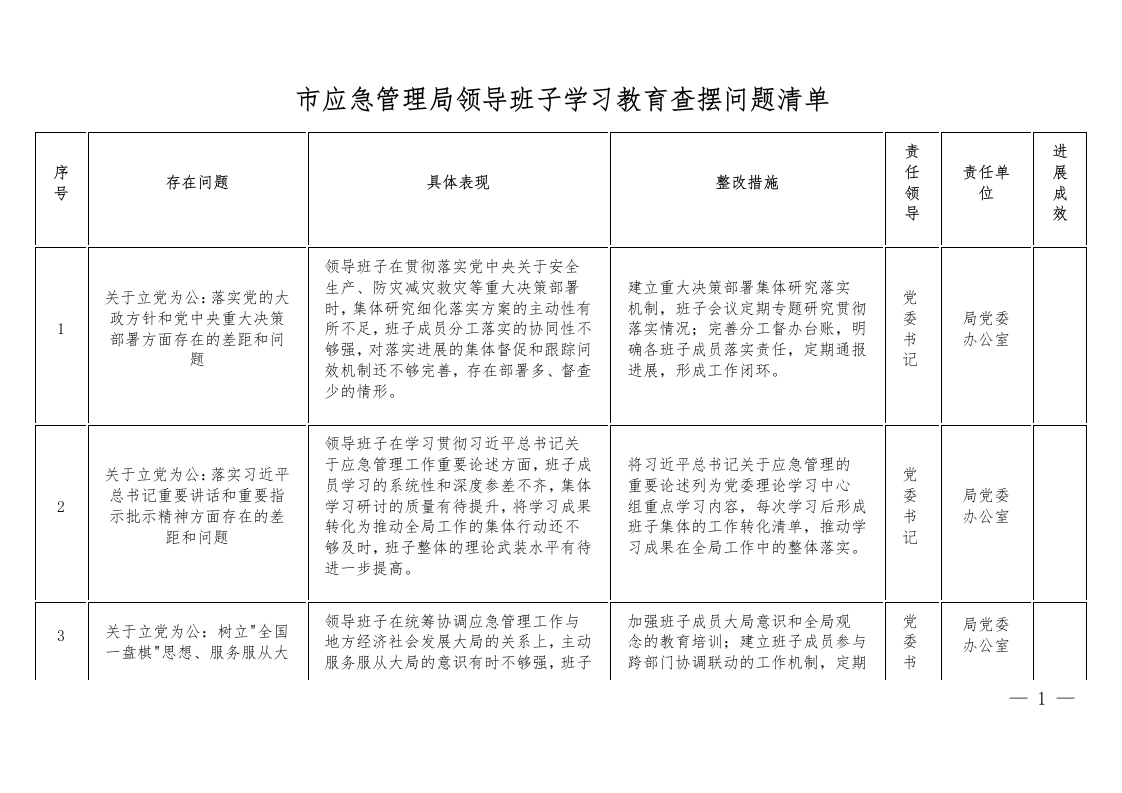 首页公文大全工作汇报市应急管理局领导班子学习教育查摆问题清单