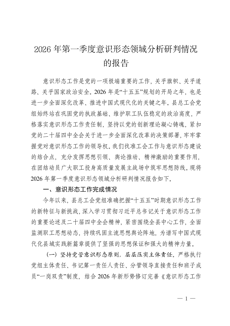 2026年第一季度意识形态领域分析研判情况的报告