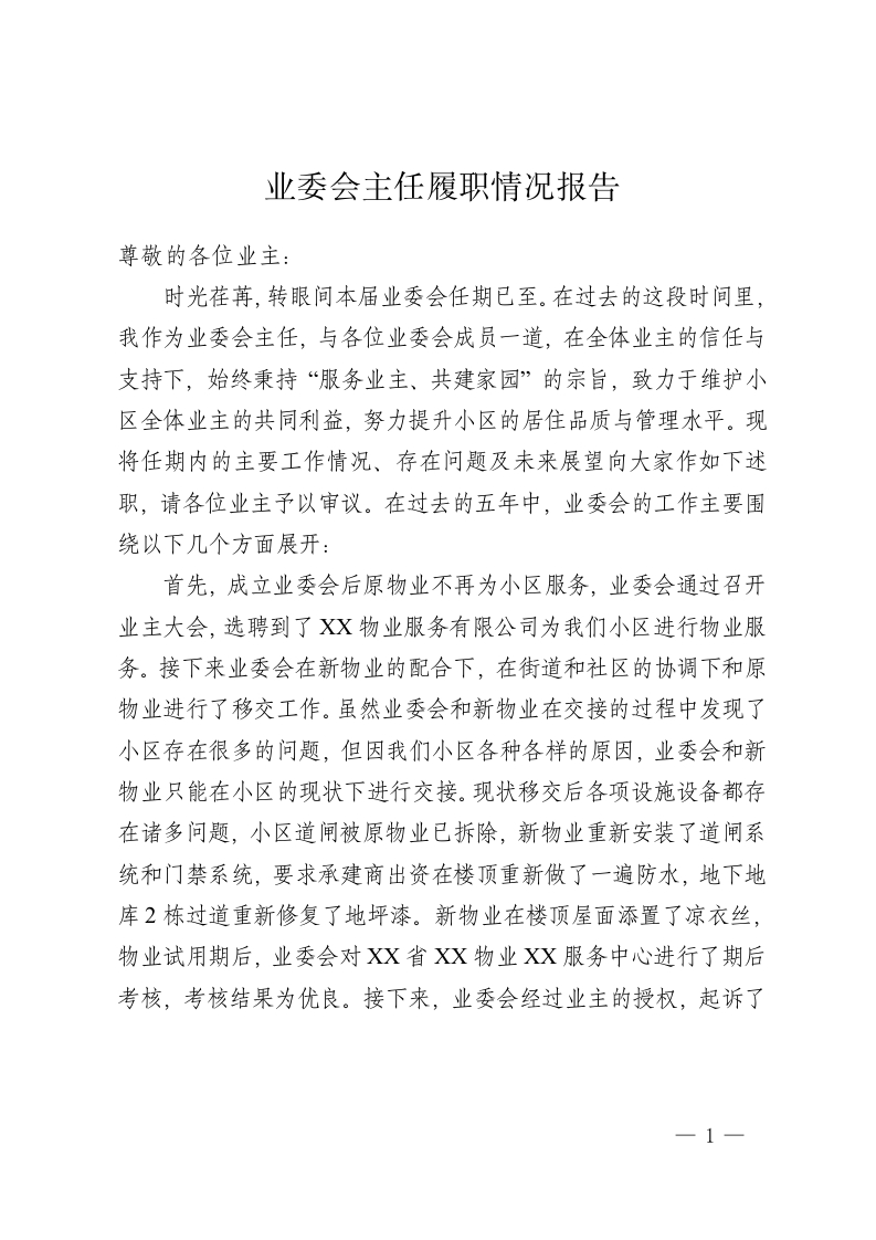 业委会主任履职情况报告