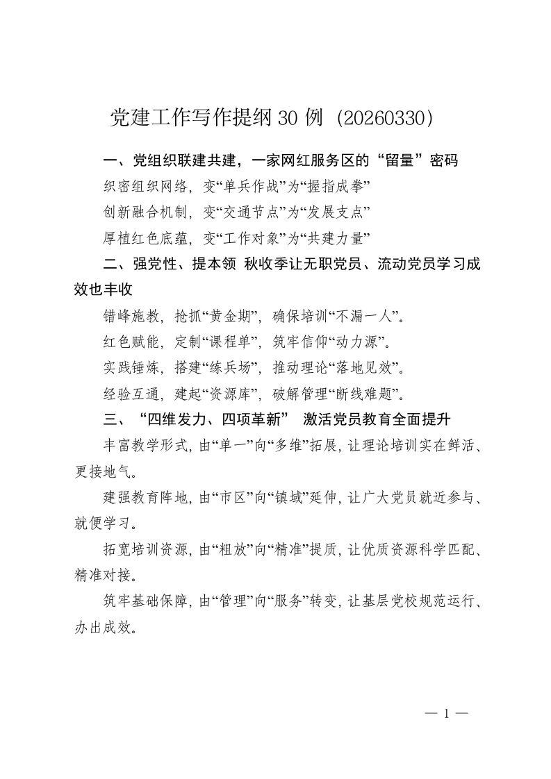 首页写作提升写作提纲党建工作写作提纲30例(20260330)