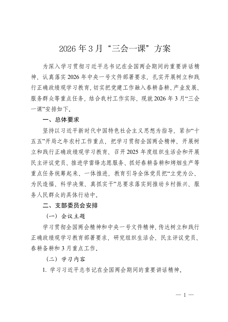 2026年3月“三会一课”方案