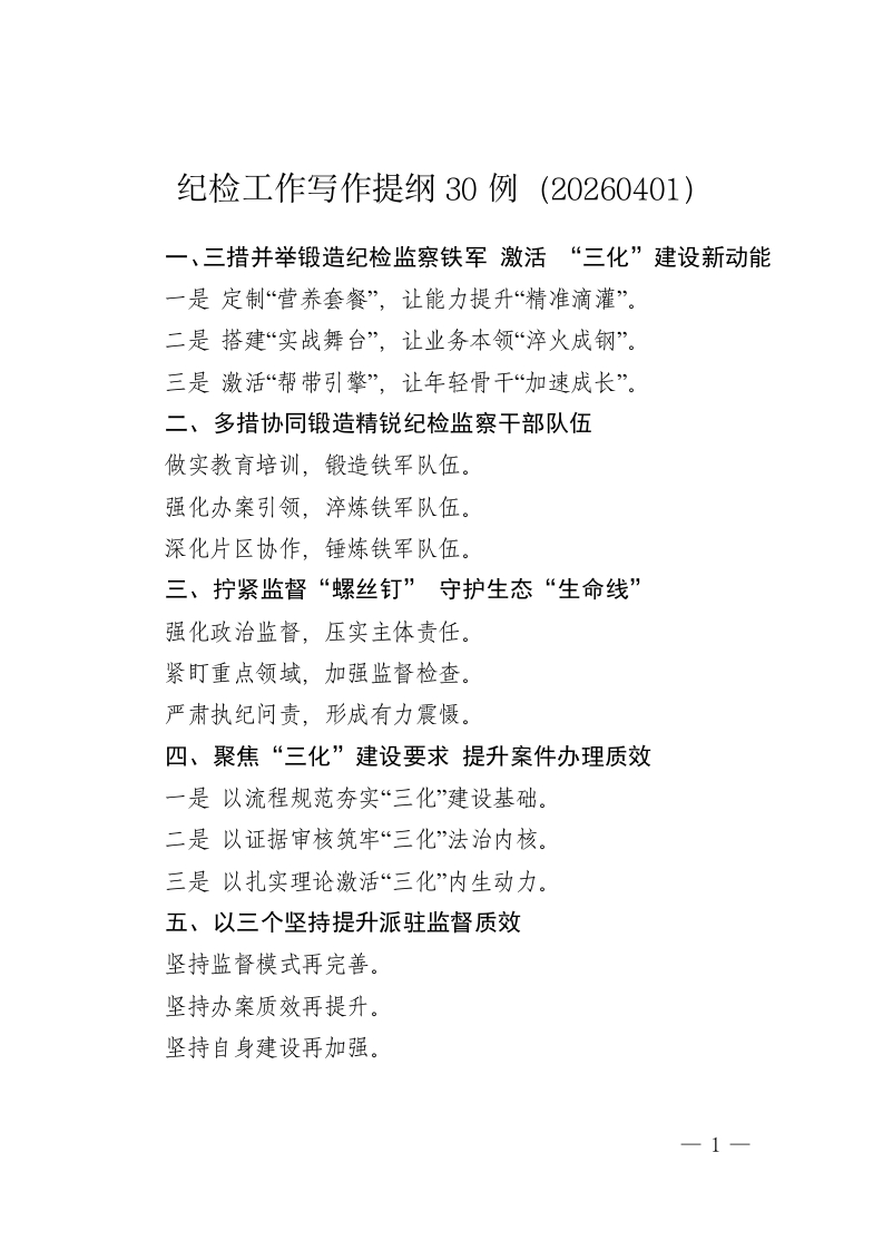 首页写作提升写作提纲纪检工作写作提纲30例(20260401)