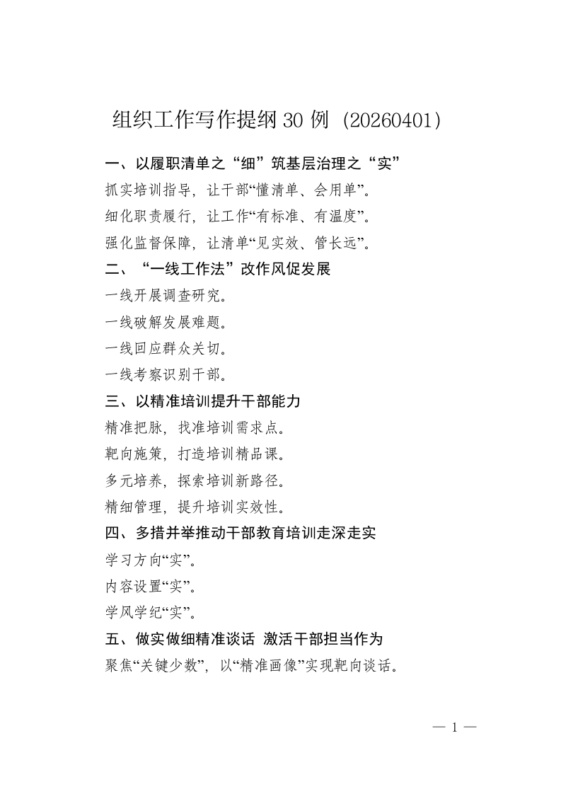 首页写作提升写作提纲组织工作写作提纲30例(20260401)