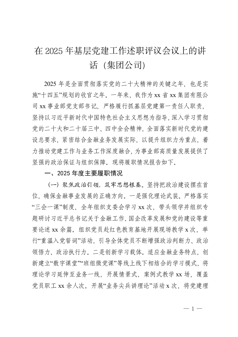 在2025年基层党建工作述职评议会议上的讲话(集团公司)
