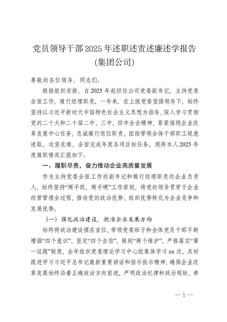 党员领导干部2025年述职述责述廉述学报告(集团公司)