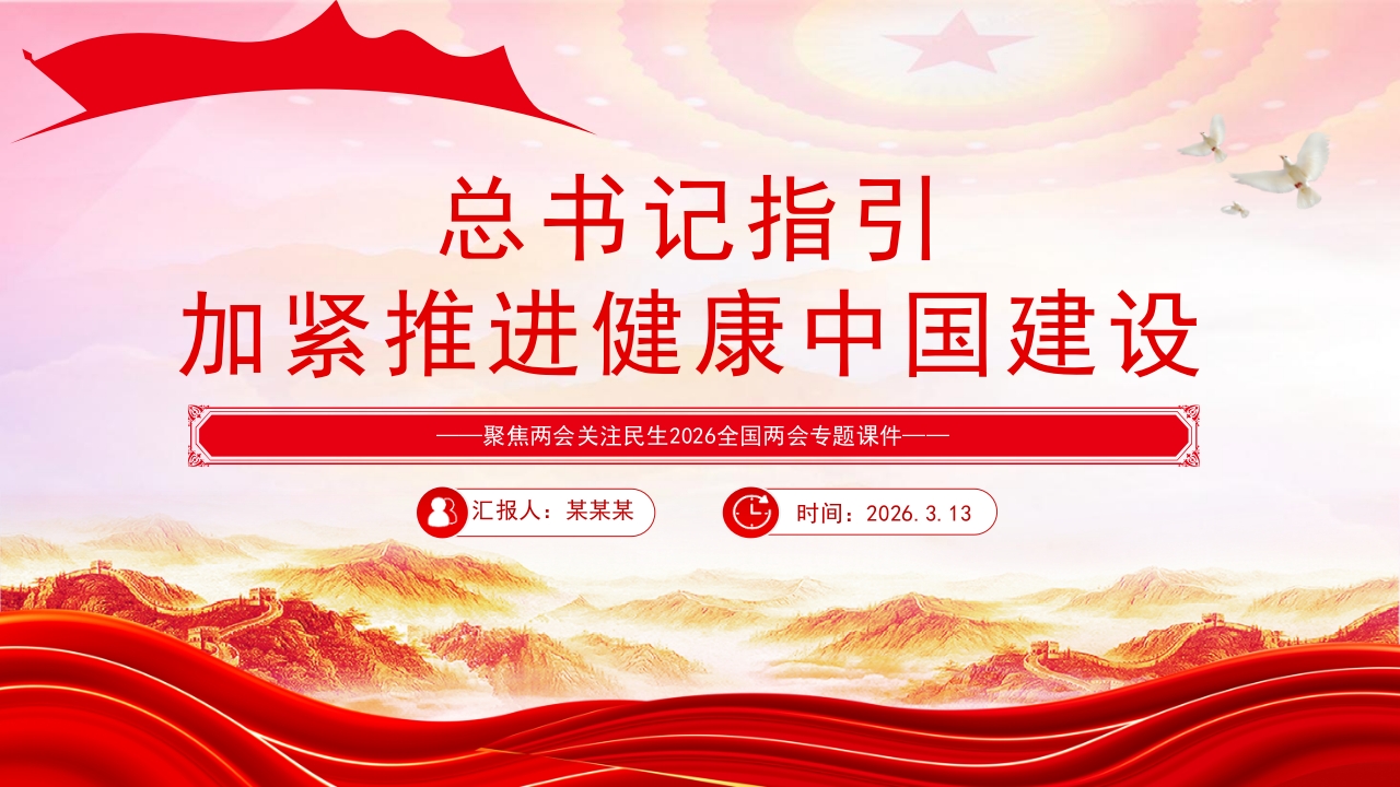 首页PPT课件模板PPT课件模板2026全国两会专题课件PPT:总书记指引加紧推进健康中国建设