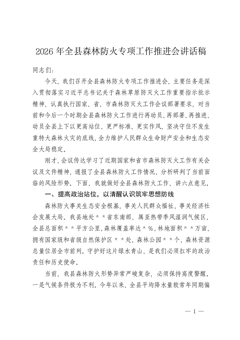 首页公文大全讲话发言2026年全县森林防火专项工作推进会讲话稿