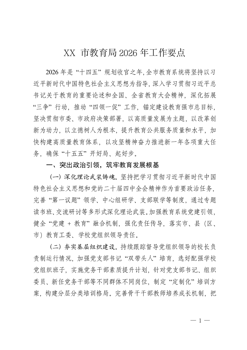 首页公文大全工作要点XX 市教育局2026 年工作要点
