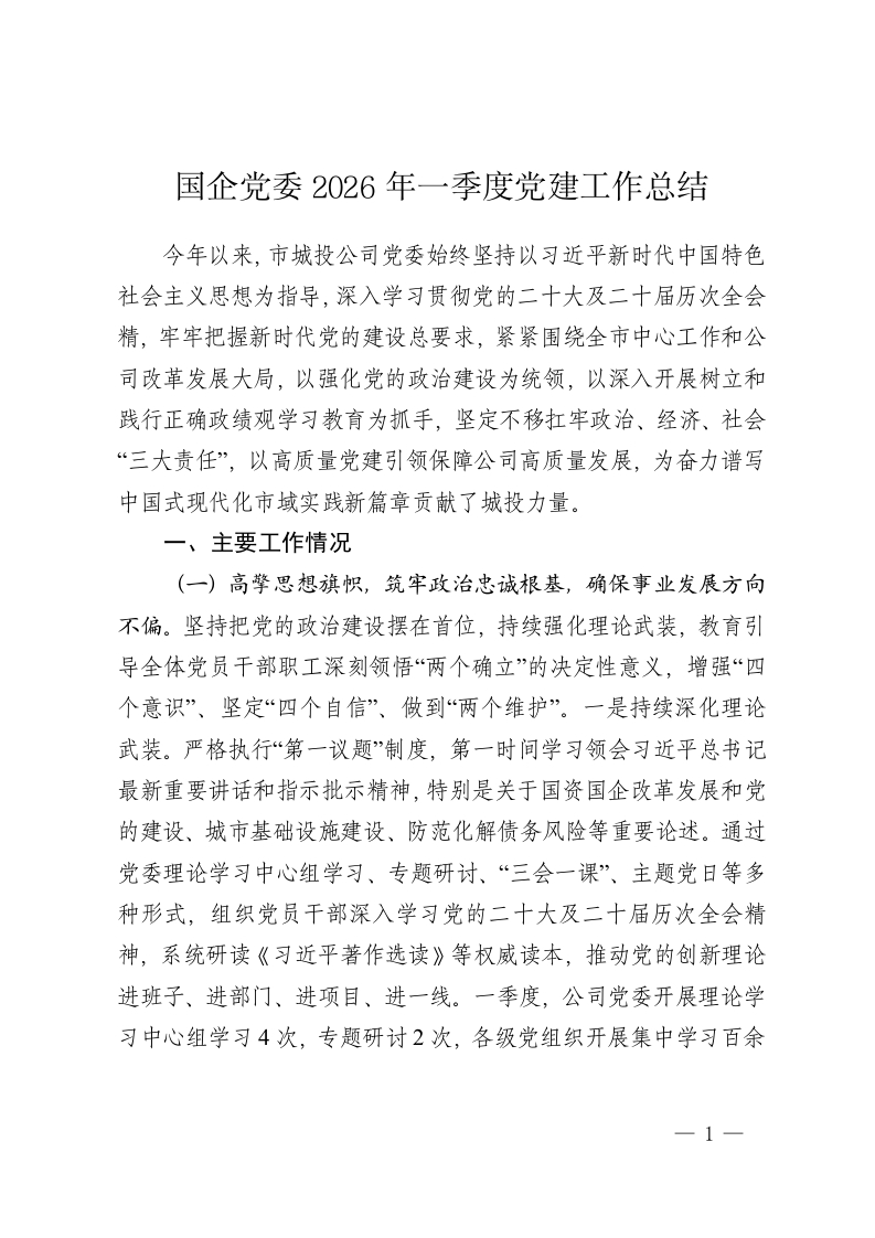 首页公文大全总结报告国企党委2026年一季度党建工作总结