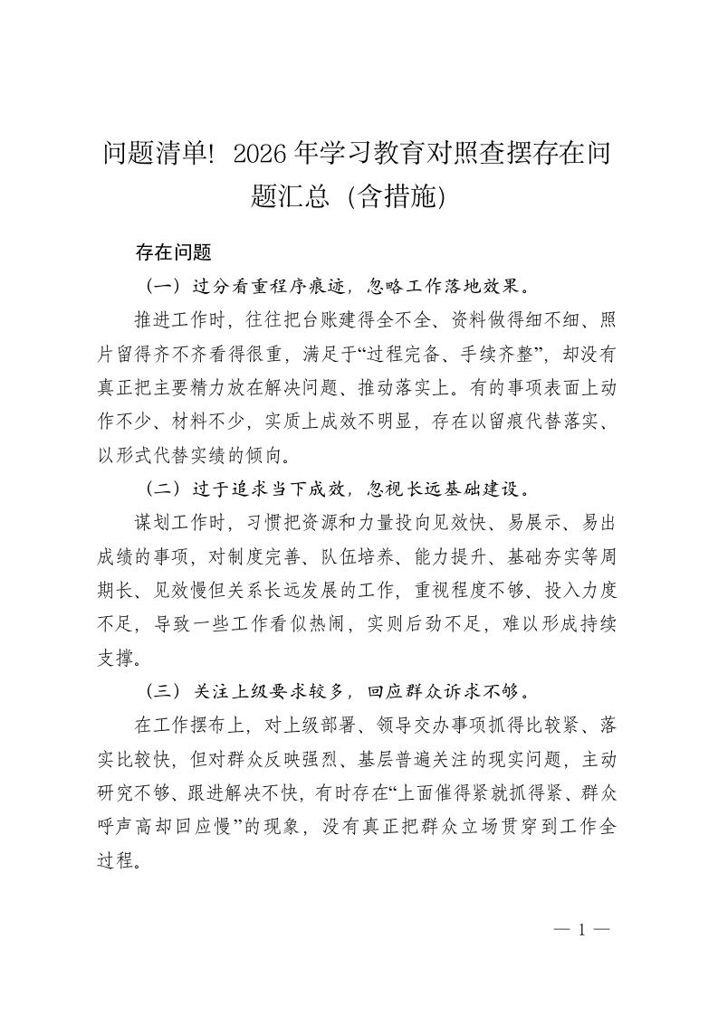 问题清单!2026年学习教育对照查摆存在问题汇总(含措施)