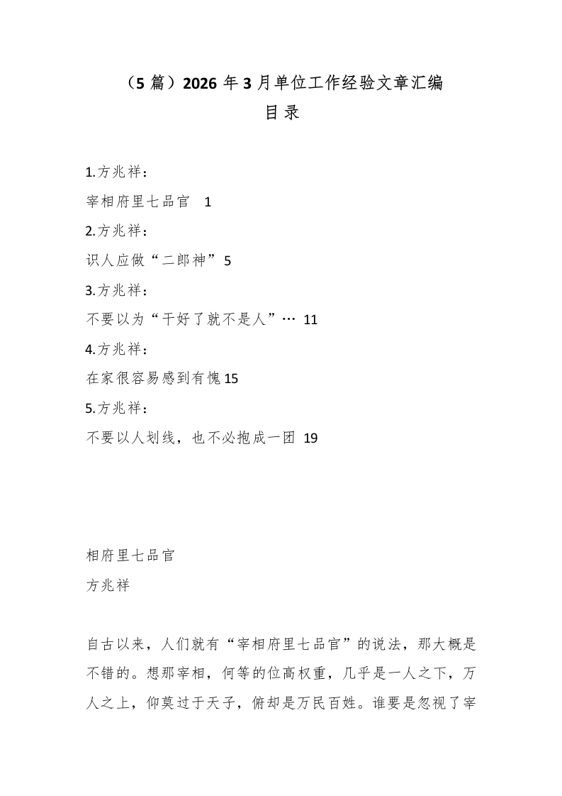 (5篇)2026年3月单位工作经验文章汇编