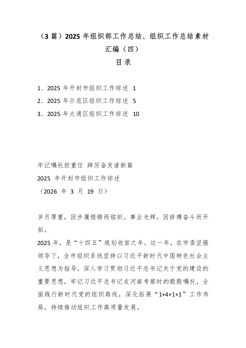 (3篇)2025年组织部工作总结、组织工作总结素材汇编(四)
