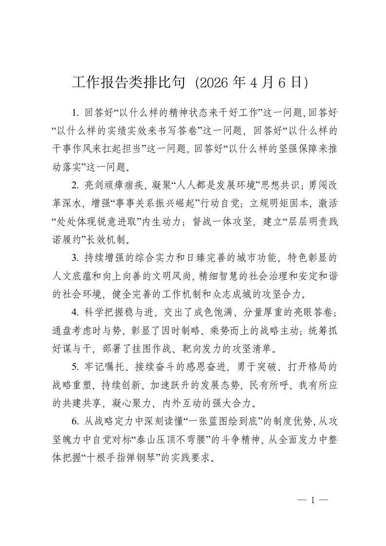 工作报告类排比句(2026年4月6日)